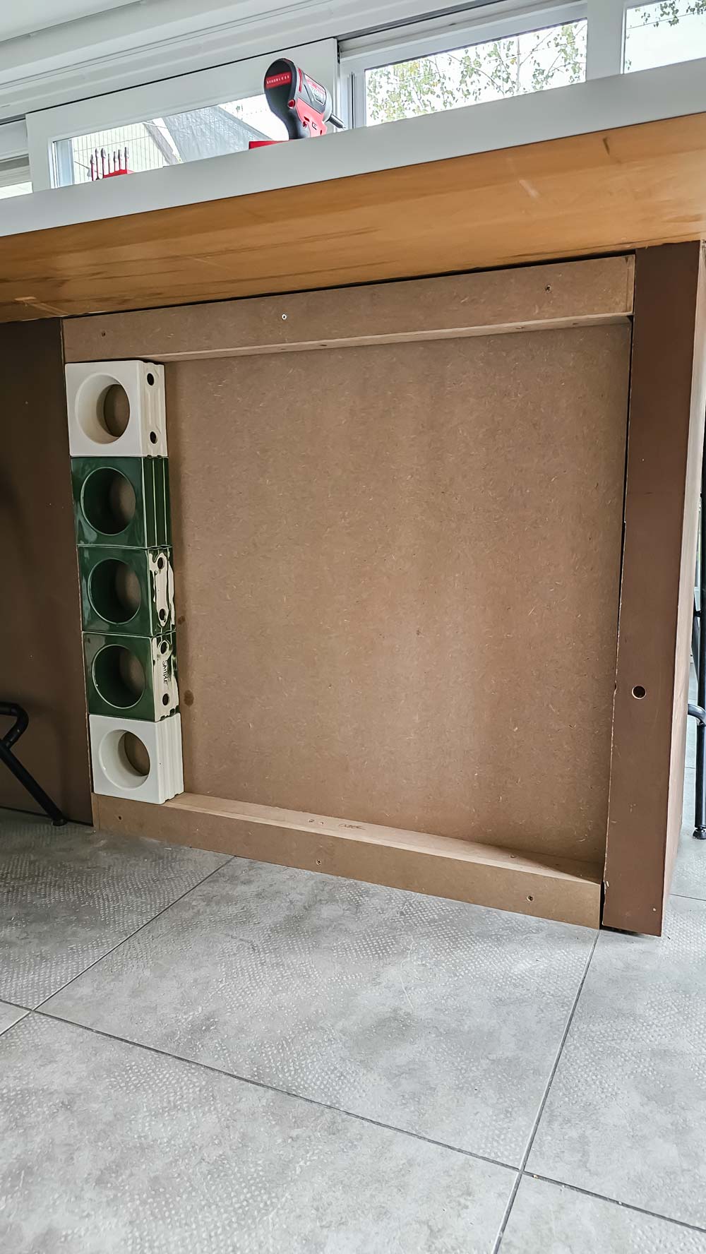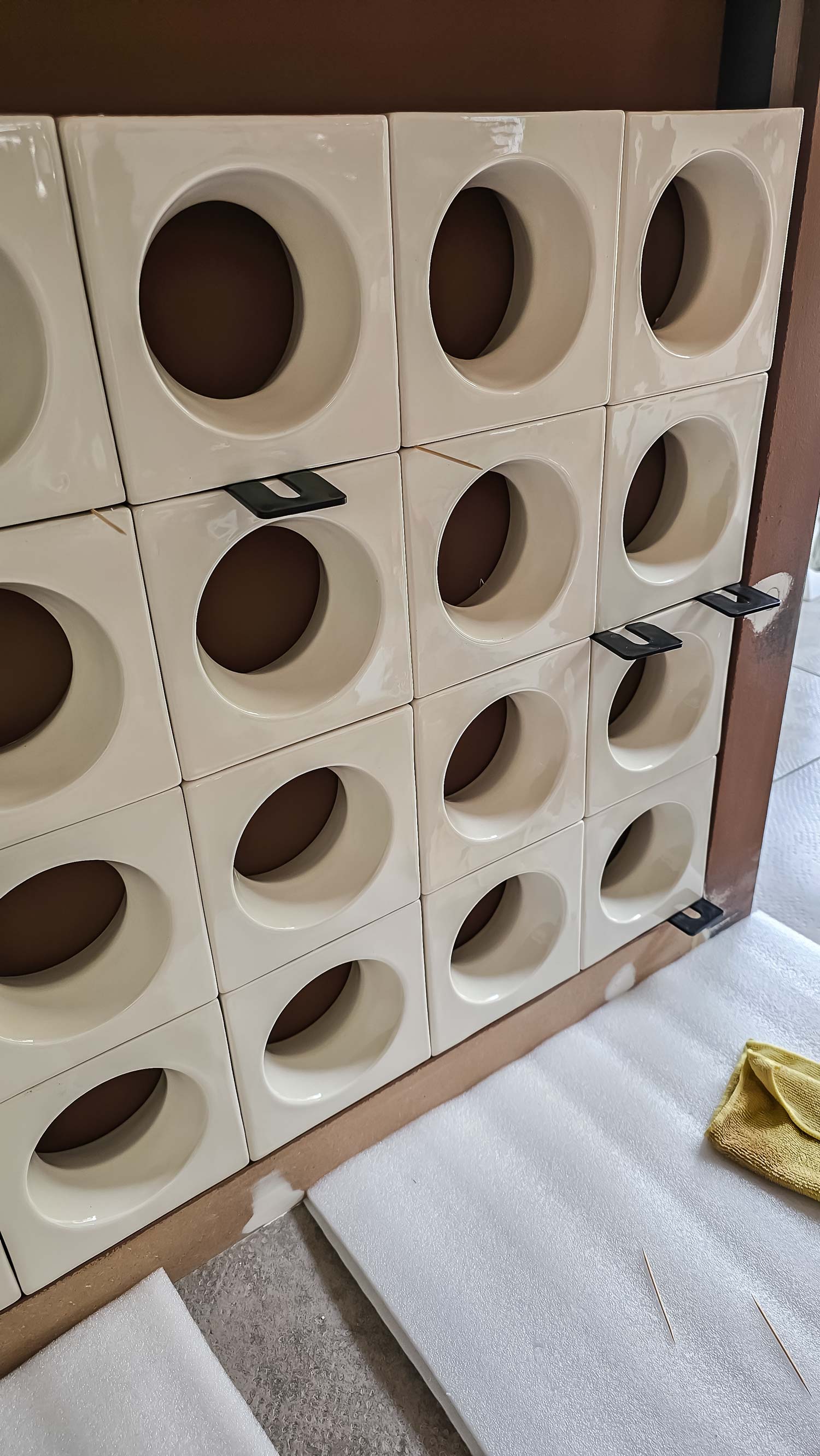 Let op: zoals eerder aangegeven zijn Cobogó-blokken handgemaakt, waardoor een volledig strakke uitlijning vrijwel niet te bereiken is. In ons geval hebben we bewust voor deze natuurlijke uitstraling gekozen. Valt dit niet binnen uw stijl, dan kunt u de tussenruimtes met voegmiddel strak afwerken.