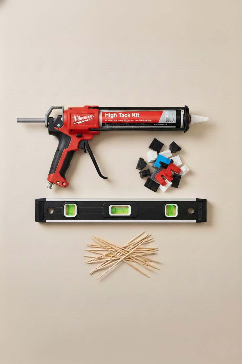 Zodra de high-tackkit volledig is uitgehard (volg hierbij de instructies van de fabrikant), kun je de uitvulplaatjes en eventuele houten prikkers verwijderen. Werk het geheel daarna af met plinten om een strakke overgang te creëren. Plak de Cobogó-stenen zorgvuldig af en schilder de onbewerkte delen naar wens.