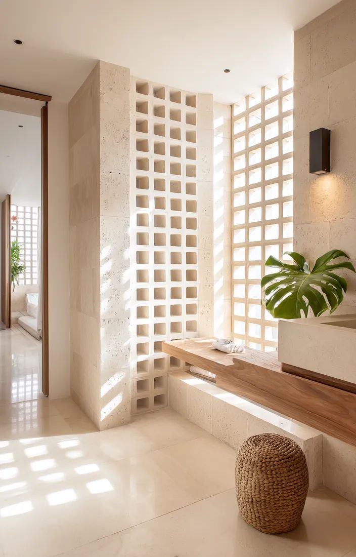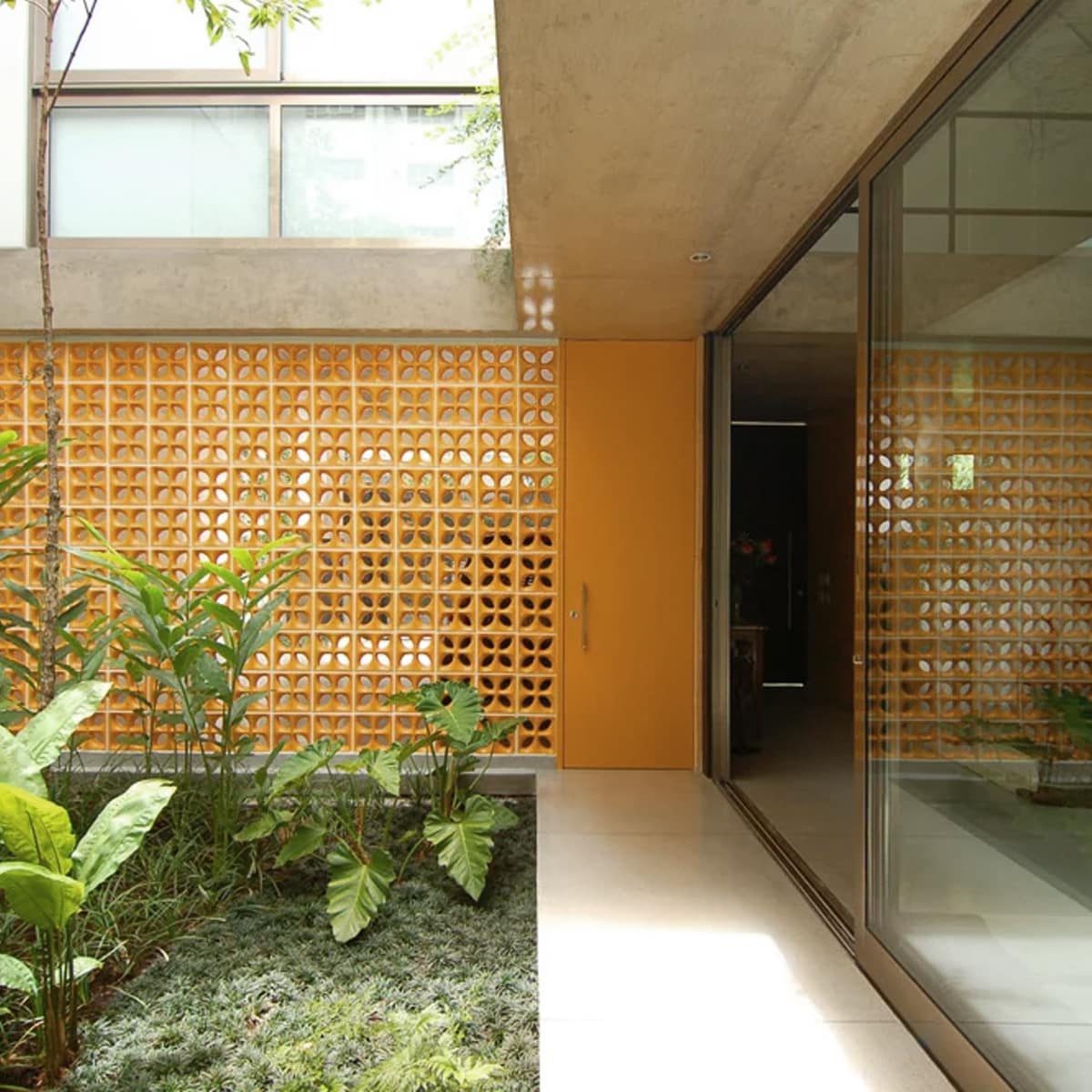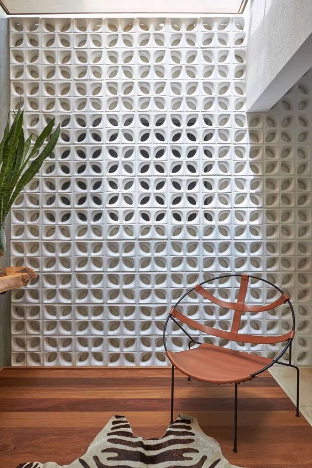 - De Cobogó stenen worden als decoratieve ‘huid’ of scheiding vóór een dragende muur geplaatst.