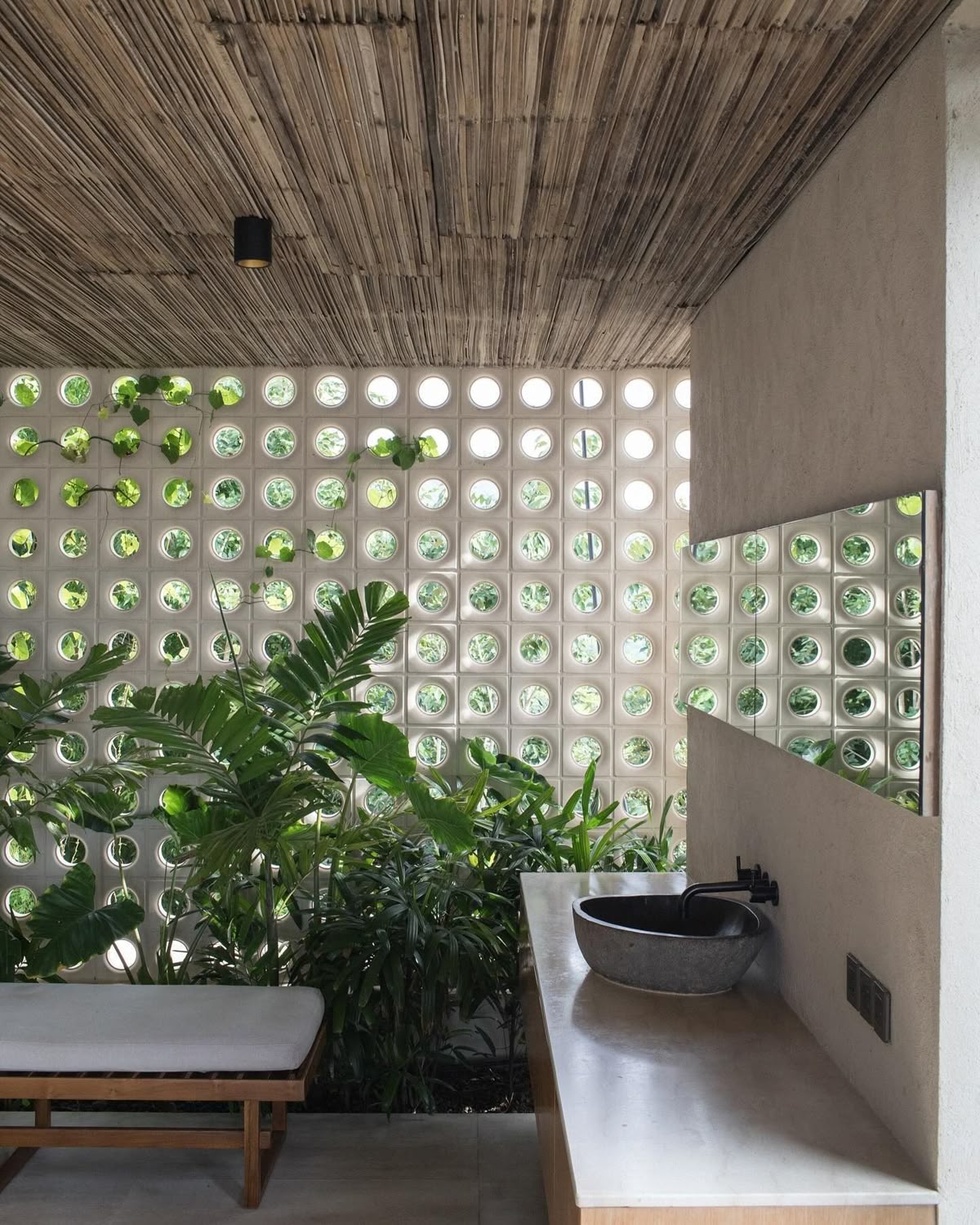 - De Cobogó stenen worden als decoratieve ‘huid’ of scheiding vóór een dragende muur geplaatst.